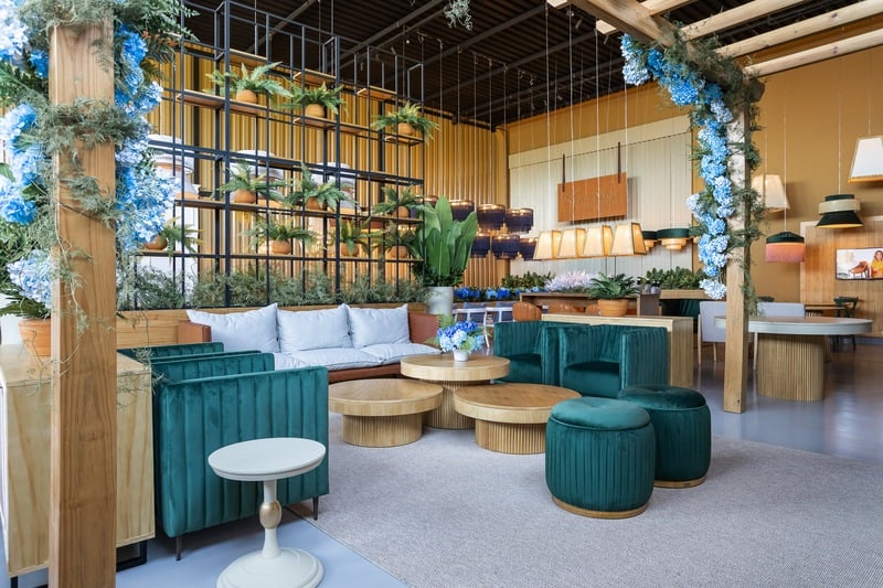 As poltronas, cadeiras, sofás e puffs apresentam um design contemporâneo e elegante, sendo um destaque visual. Os tecidos, especialmente selecionados, oferecem uma variedade de cores para combinar com qualquer evento.